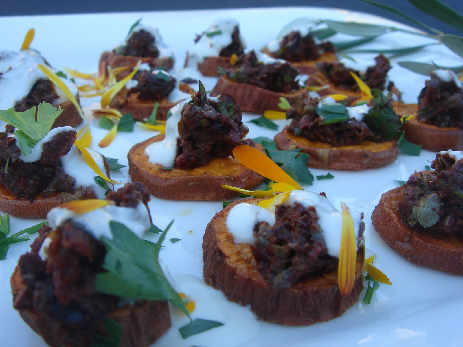 Sweet Potato Coins with Chèvre and Tapenade